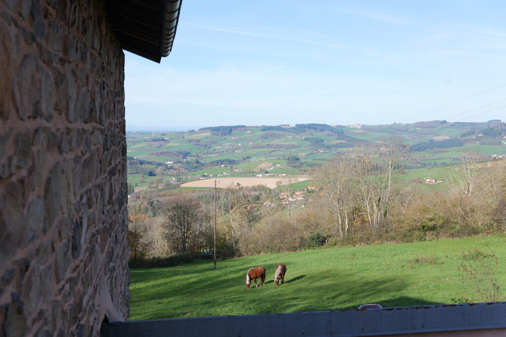 Située dans le village de Ronno, la maison bénéficie d’un environnement calme et reposant, avec une vue dégagée sur la vallée et les monts du Beaujolais.